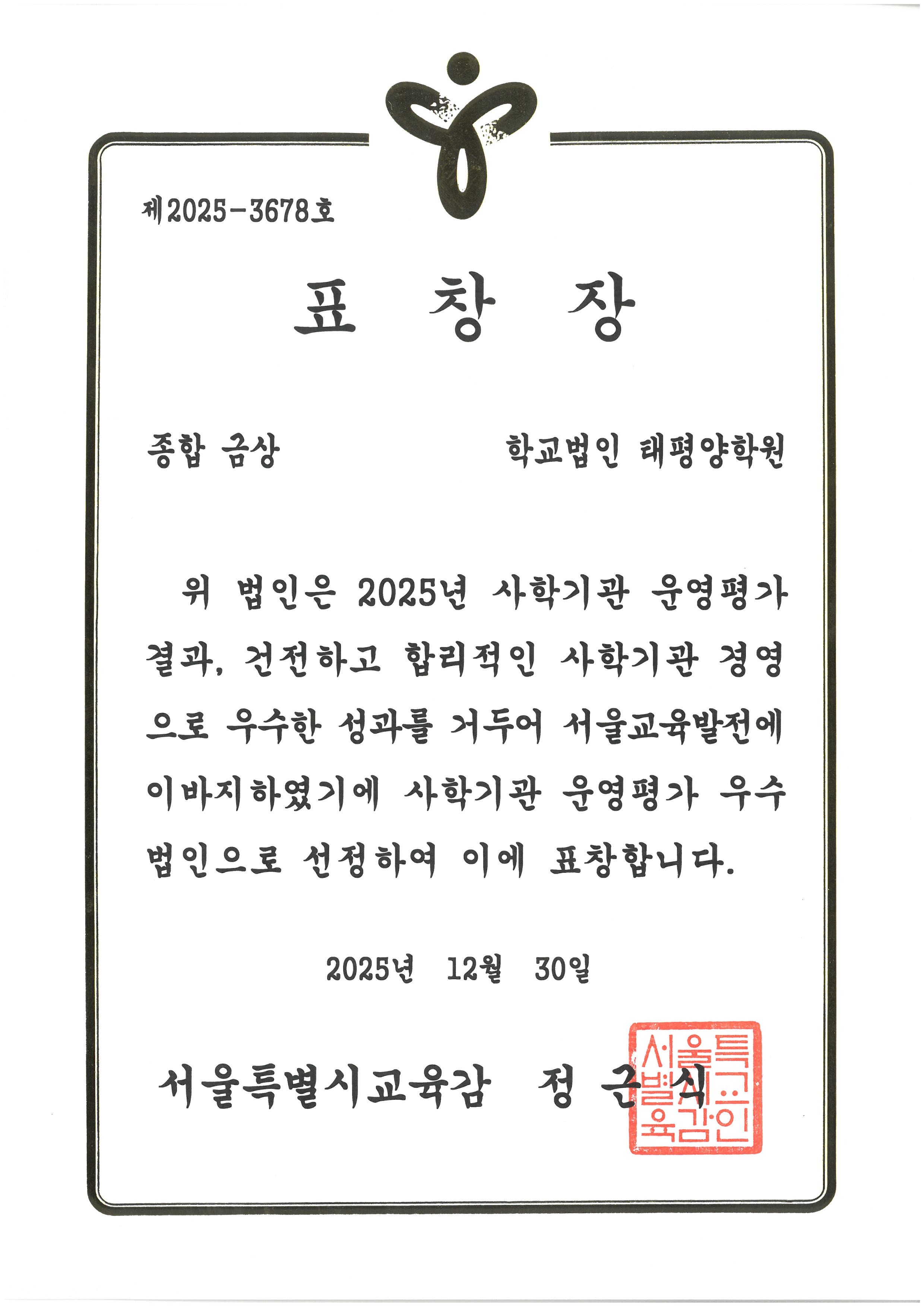 2025³â »çÇбâ°ü ¿î¿µÆò°¡ Á¾Çձݻó(1À§) ¼ö»ó