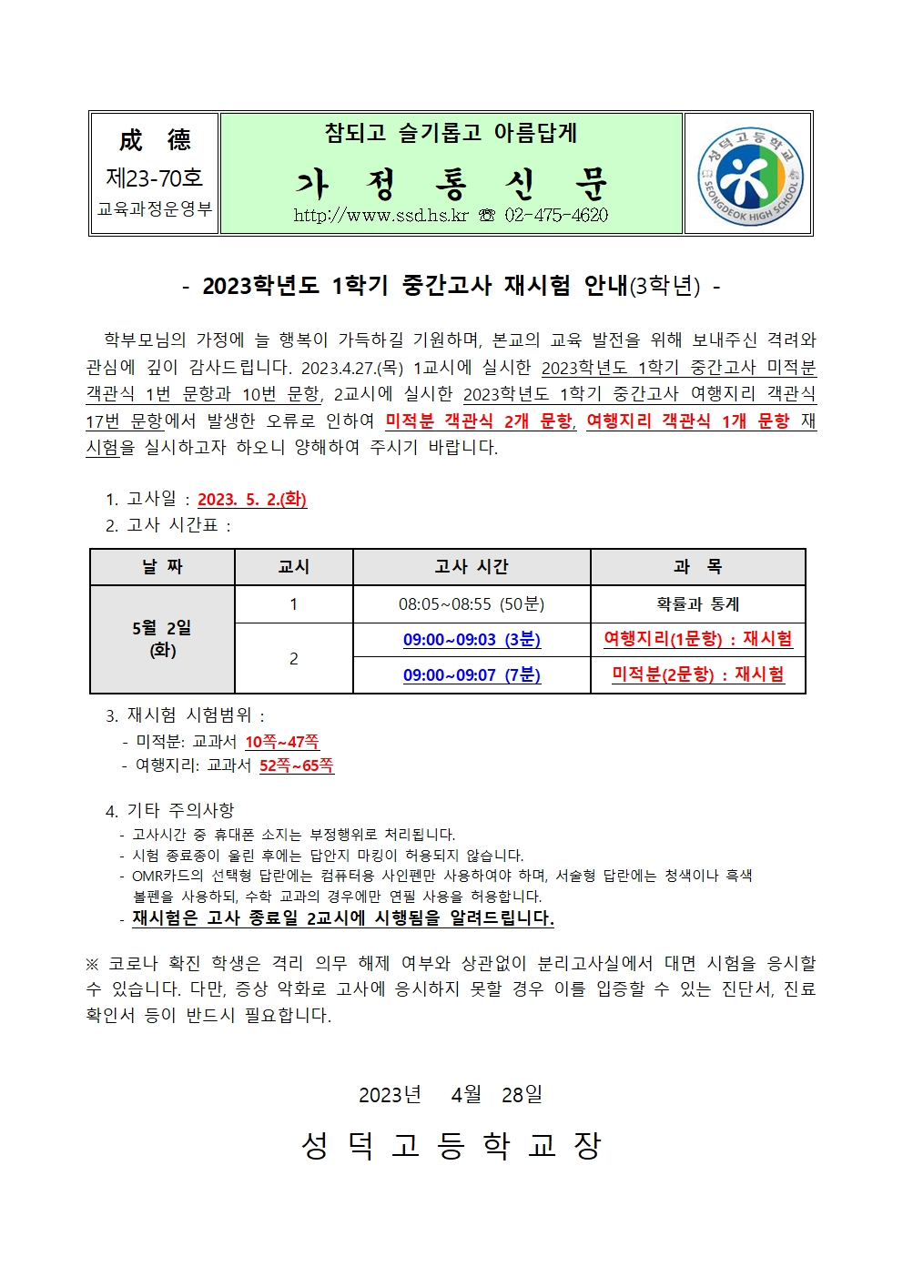 2023Çг⵵ 1Çбâ Áß°£°í»ç Àç½ÃÇè ¾È³»(3Çгâ)