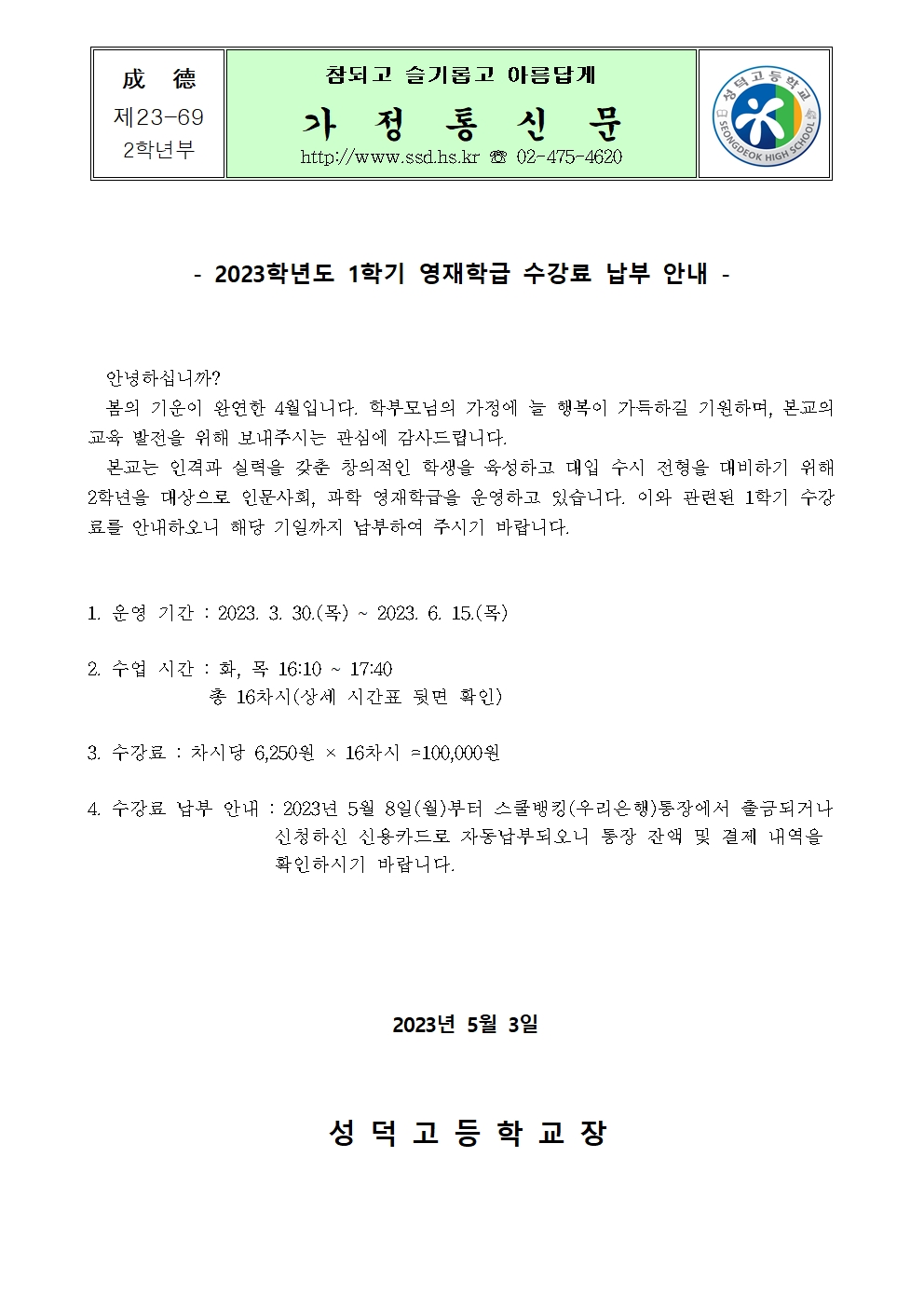 2023Çг⵵ 1Çб⠿µÀçÇÐ±Þ ¼ö°­·á ³³ºÎ ¾È³»