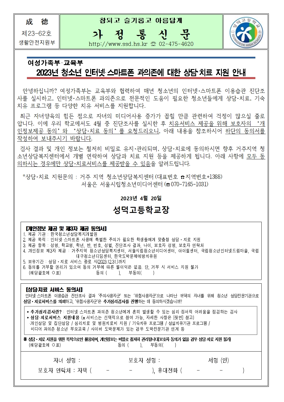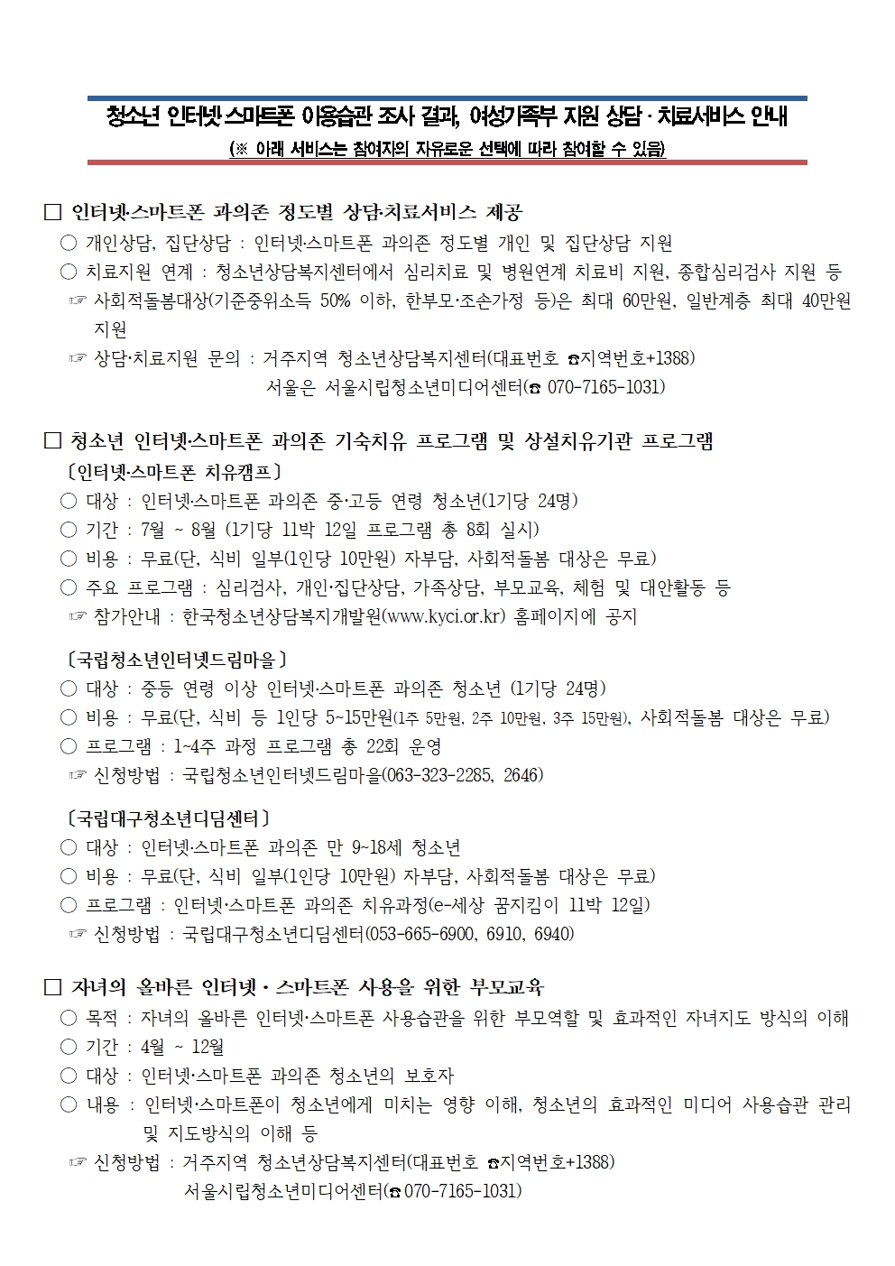 2023³â û¼Ò³â ÀÎÅͳݡ¤½º¸¶Æ®Æù °úÀÇÁ¸¿¡ ´ëÇÑ »ó´ã¡¤Ä¡·á Áö¿ø ¾È³»