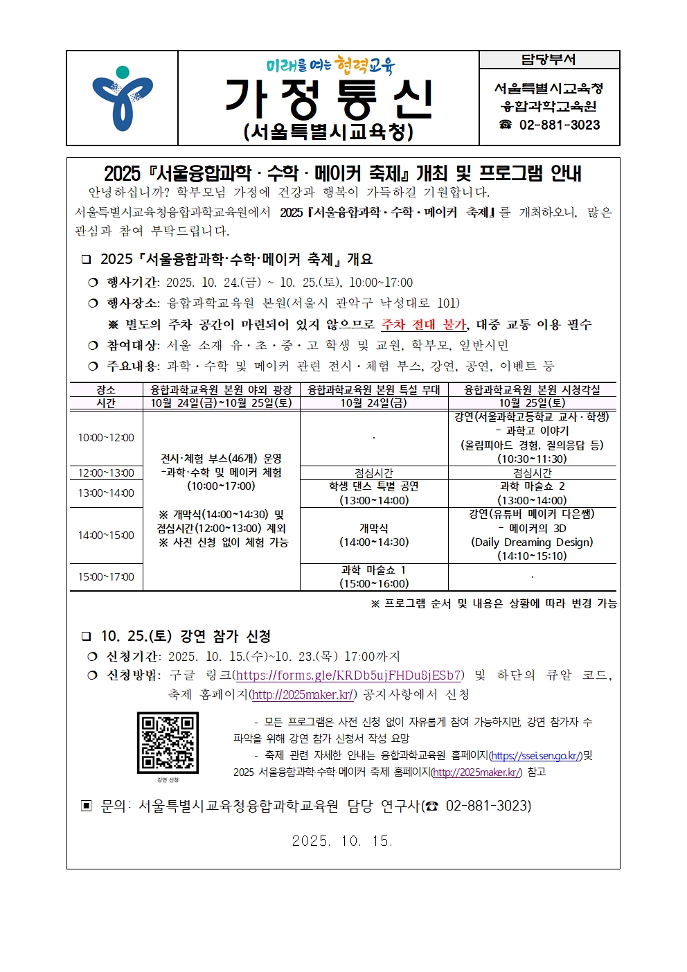 2025¡º¼­¿ïÀ¶ÇÕ°úÇС¤¼öÇС¤¸ÞÀÌÄ¿ ÃàÁ¦¡»°³ÃÖ ¹× ÇÁ·Î±×·¥ ¾È³»