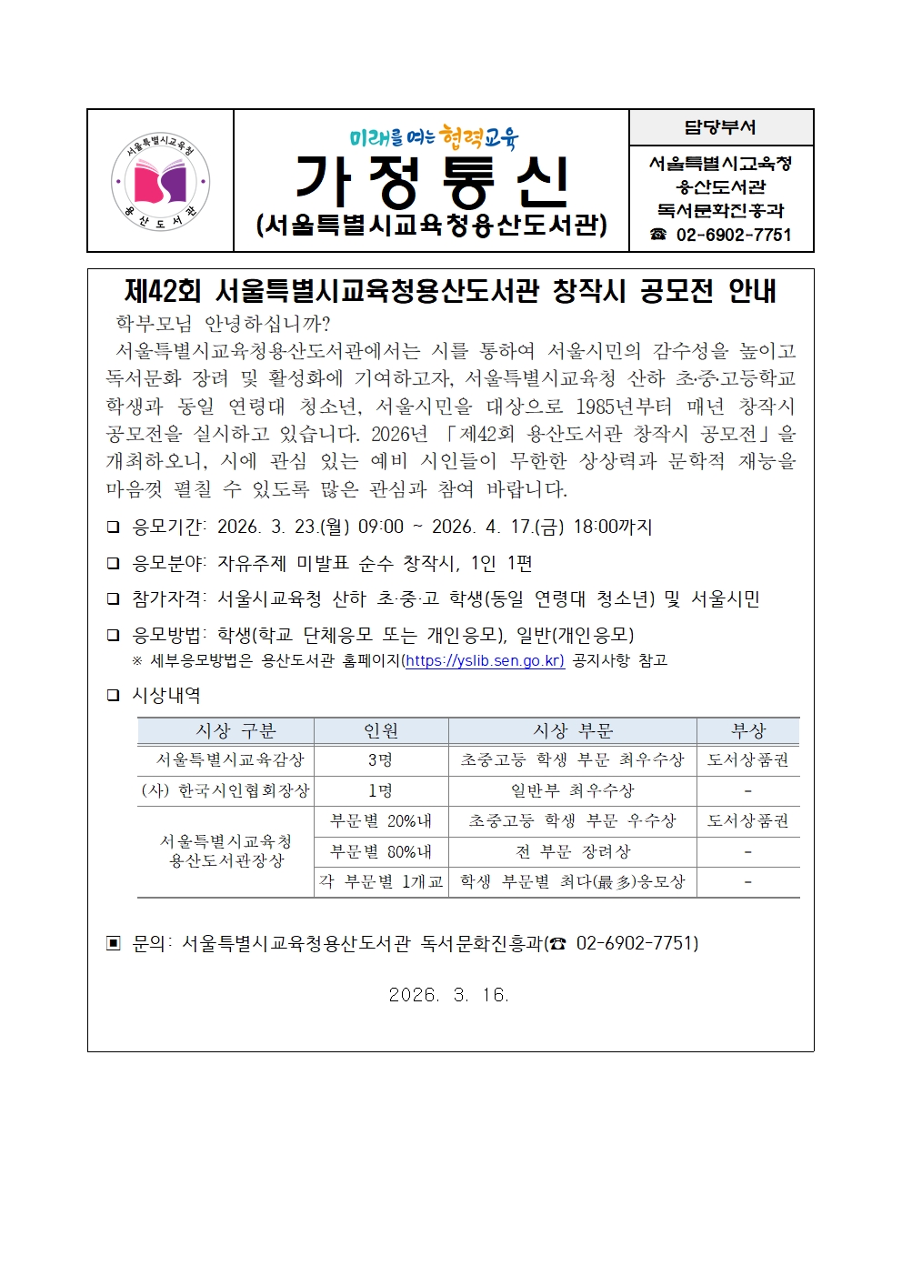 °¡Á¤Åë½Å¹®(Á¦42ȸ ¼­¿ïƯº°½Ã±³À°Ã»¿ë»êµµ¼­°ü âÀ۽à °ø¸ðÀü ¾È³»).hwp °¡Á¤Åë½Å¹®(Á¦42ȸ ¼­¿ïƯº°½Ã±³À°Ã»¿ë»êµµ¼­°ü âÀ۽à °ø¸ðÀü ¾È³»).hwp   ´Ù¿î·Îµå ¼ö : [ 13 ]
