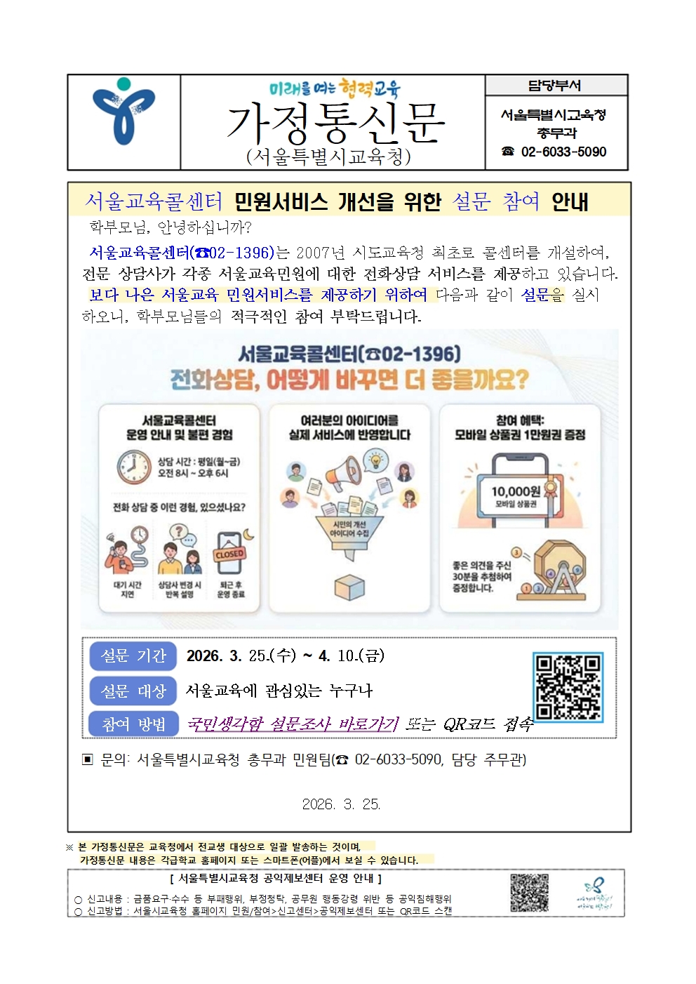 ¼­¿ï±³À°Äݼ¾ÅÍ ¹Î¿ø¼­ºñ½º °³¼±À» À§ÇÑ ¼³¹® Âü¿© ¾È³»