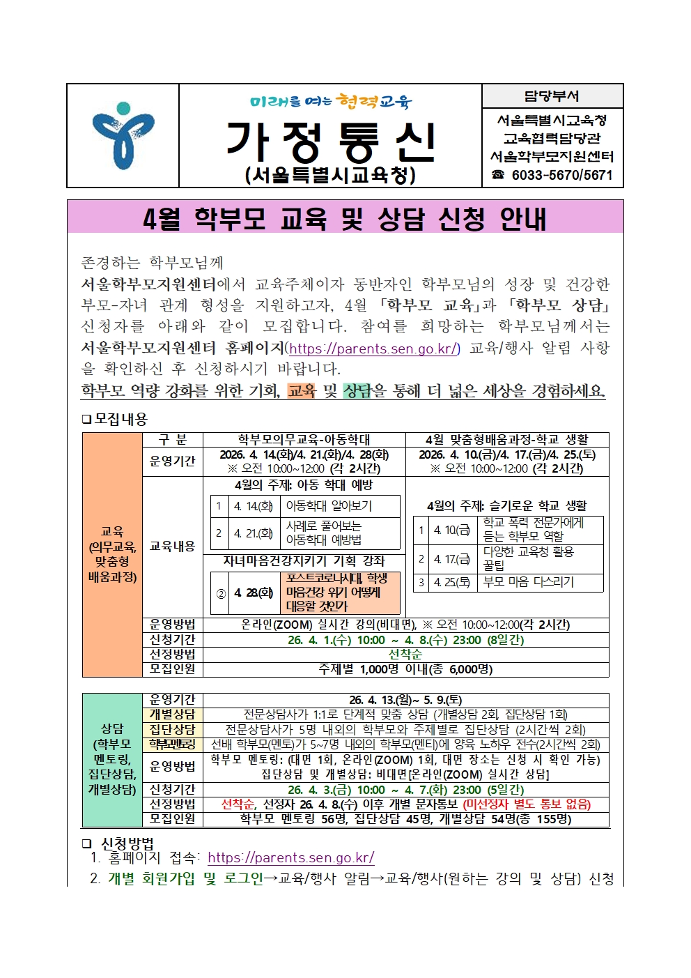 °¡Á¤Åë½Å¹®(±³À°Ã»)(4¿ù Çкθ𠱳À° ¹× »ó´ã ½Åû ¾È³»).hwp °¡Á¤Åë½Å¹®(±³À°Ã»)(4¿ù Çкθ𠱳À° ¹× »ó´ã ½Åû ¾È³»).hwp   ´Ù¿î·Îµå ¼ö : [ 11 ]
