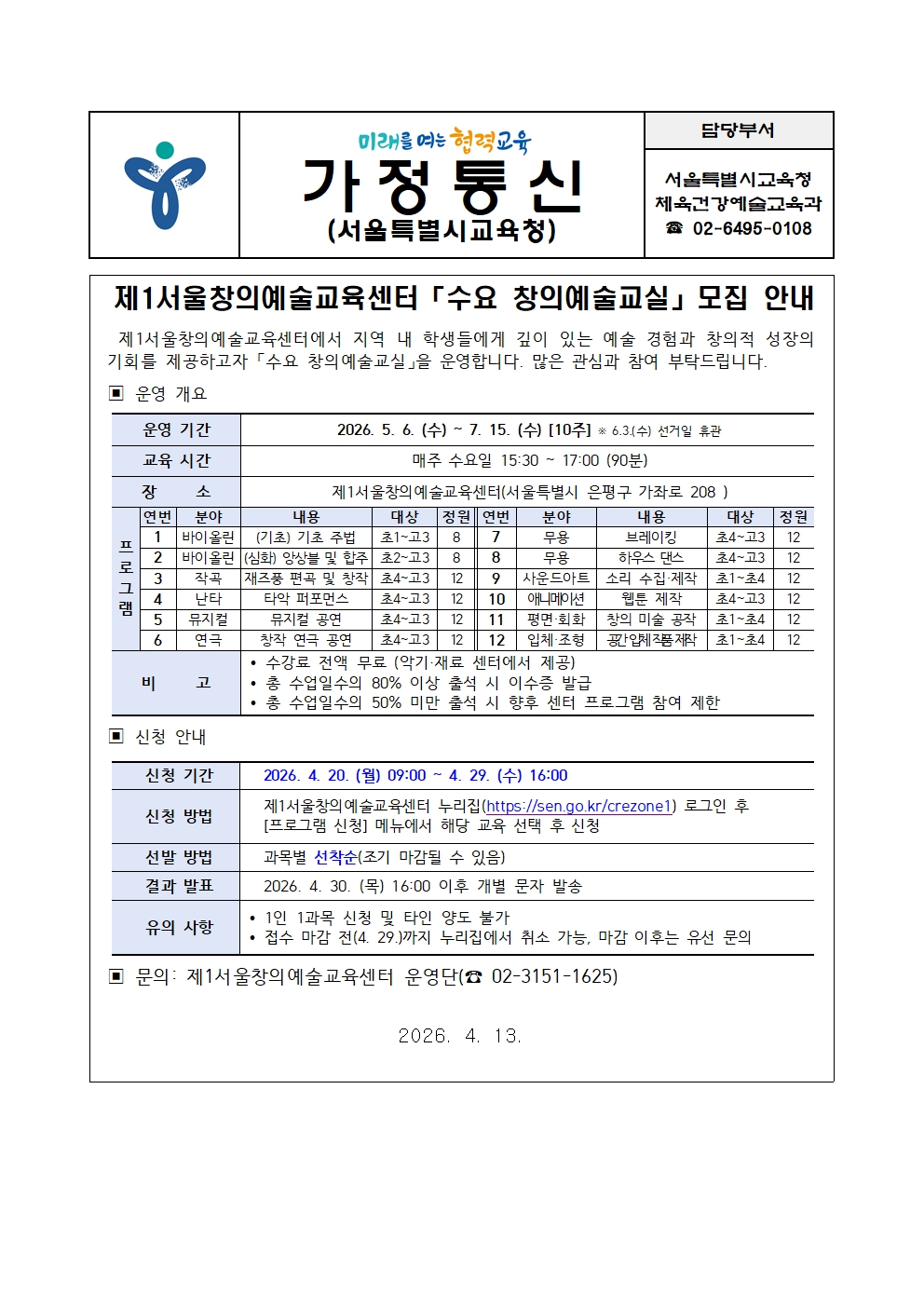 Á¦1¼­¿ïâÀÇ¿¹¼ú±³À°¼¾ÅÍ¡¸¼ö¿ä âÀÇ¿¹¼ú±³½Ç¡¹¸ðÁý ¾È³»