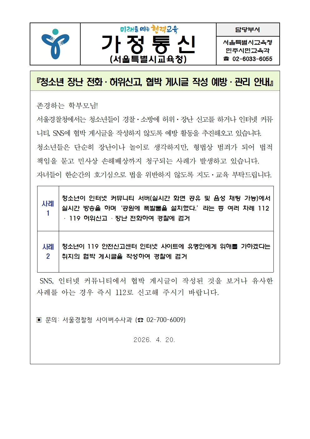 °¡Á¤Åë½Å¹®(û¼Ò³â Àå³­ ÀüÈ­¡¤ÇãÀ§½Å°í, Çù¹Ú °Ô½Ã±Û ÀÛ¼º ¿¹¹æ¡¤°ü¸® ¾È³»).hwp °¡Á¤Åë½Å¹®(û¼Ò³â Àå³­ ÀüÈ­¡¤ÇãÀ§½Å°í, Çù¹Ú °Ô½Ã±Û ÀÛ¼º ¿¹¹æ¡¤°ü¸® ¾È³»).hwp   ´Ù¿î·Îµå ¼ö : [ 1 ]