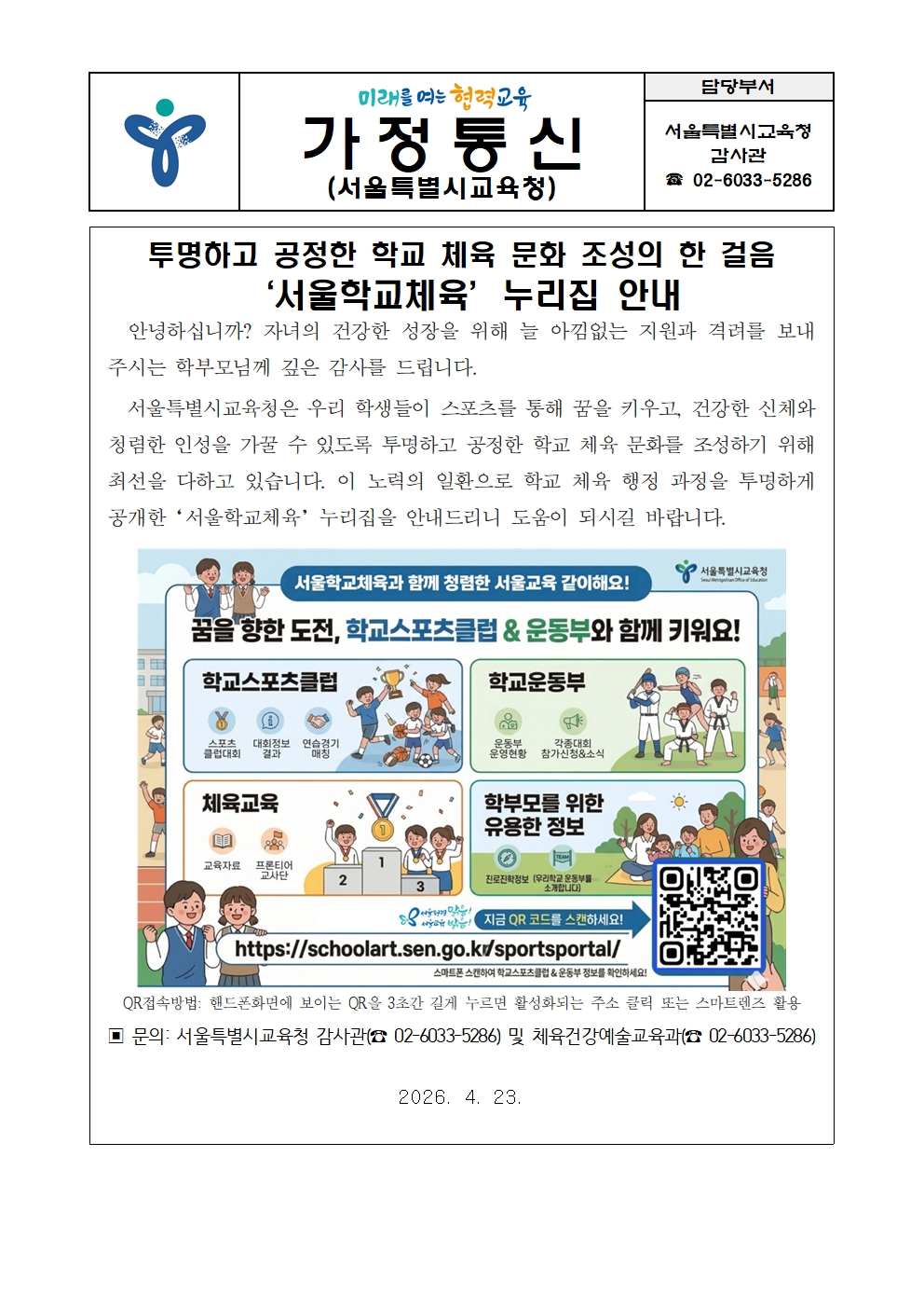 Åõ¸íÇÏ°í °øÁ¤ÇÑ Çб³ üÀ° ¹®È­ Á¶¼ºÀÇ ÇÑ °ÉÀ½¡®¼­¿ïÇб³Ã¼À°¡¯´©¸®Áý ¾È³»