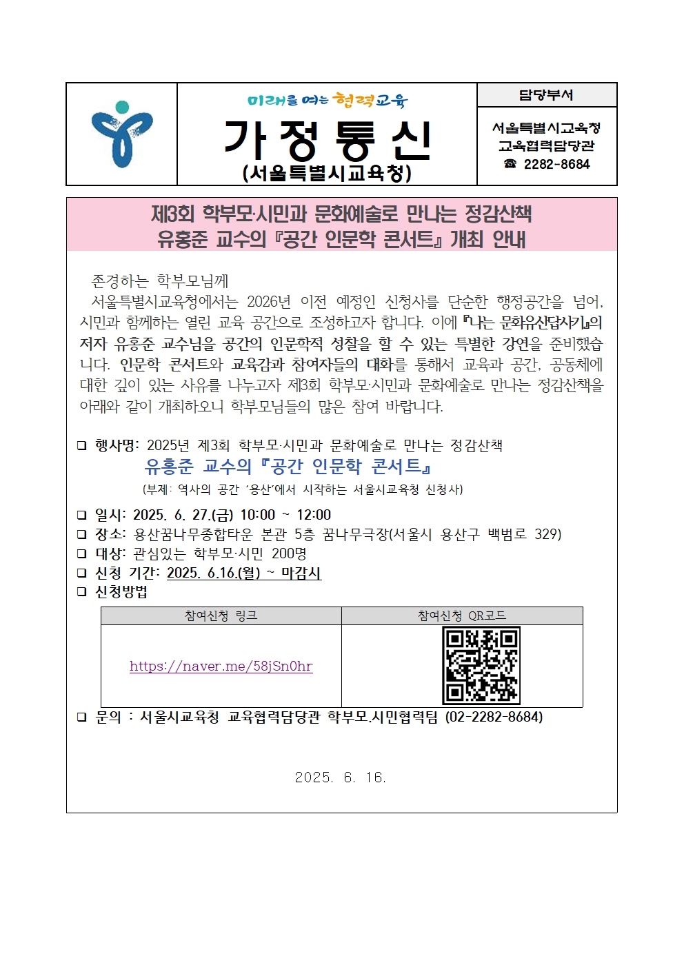 Á¦3ȸ Çкθð‧½Ã¹Î°ú ¹®È­¿¹¼ú·Î ¸¸³ª´Â Á¤°¨»êÃ¥ À¯È«ÁØ ±³¼öÀÇ¡º°ø°£ Àι®ÇÐ Äܼ­Æ®¡»°³ÃÖ ¾È³»