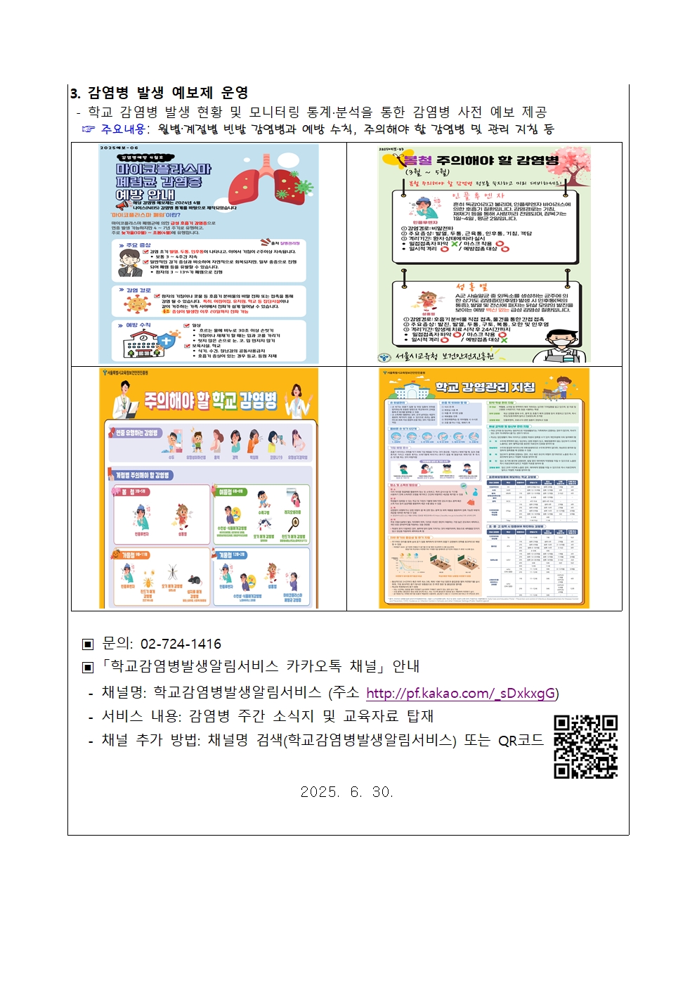 Çб³ °¨¿°º´ ¹ß»ý ÁÖ°£ ¼Ò½ÄÁö ¹× °¨¿°º´ ¿¹º¸Á¦ ¿î¿µ ¾È³»