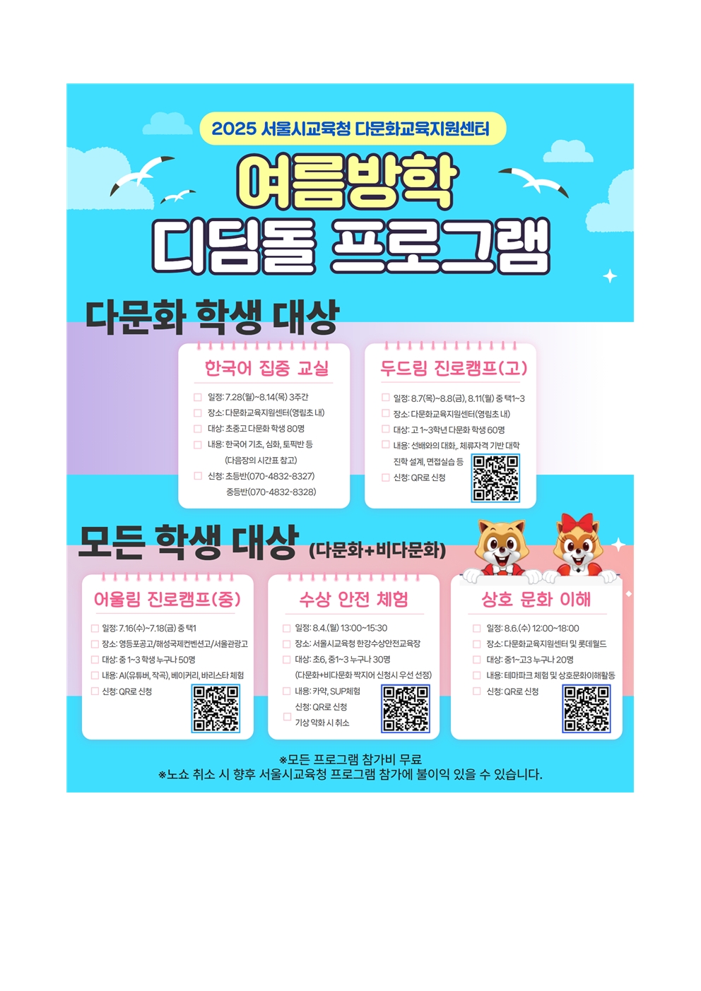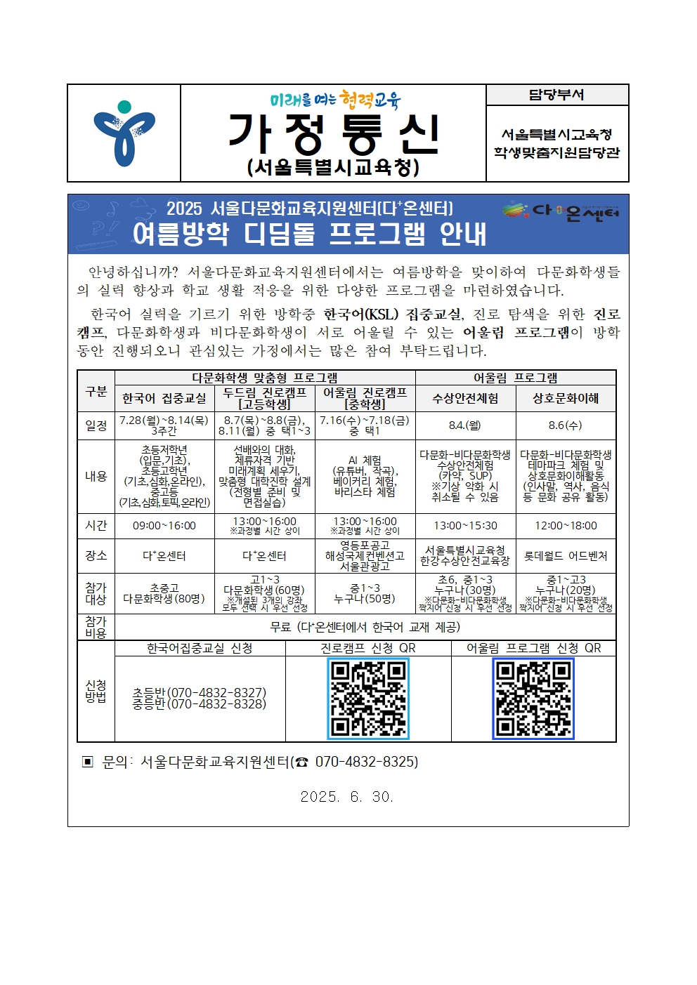 2025 ¼­¿ï´Ù¹®È­±³À°Áö¿ø¼¾ÅÍ(´Ù+¿Â¼¾ÅÍ) ¿©¸§¹æÇÐ µðµõµ¹ ÇÁ·Î±×·¥ ¾È³»