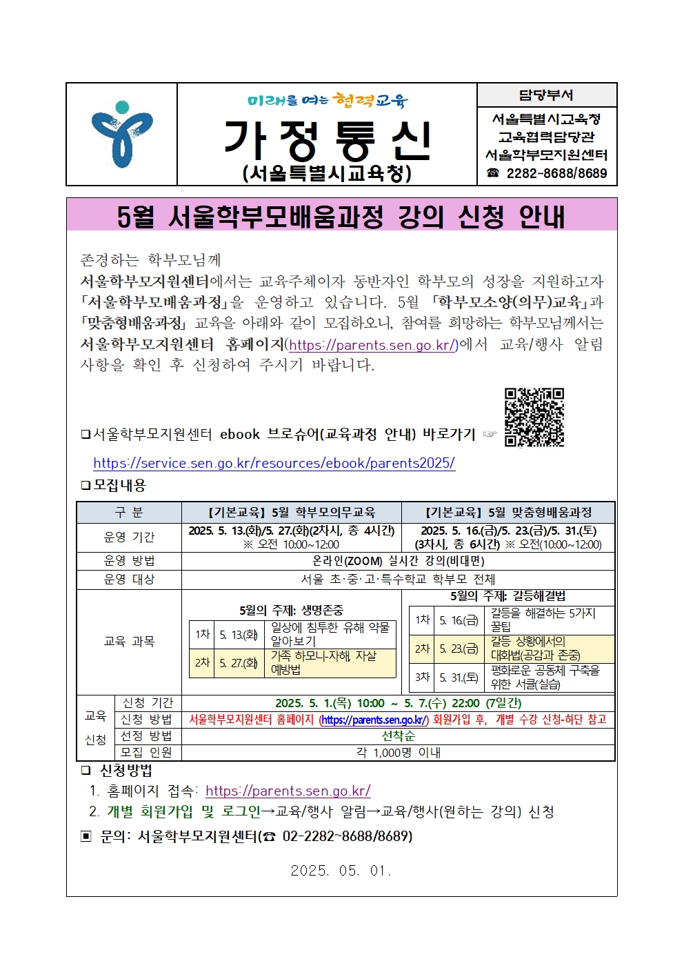 5¿ù ¼­¿ïÇкθð¹è¿ò°úÁ¤ °­ÀÇ ½Åû ¾È³»