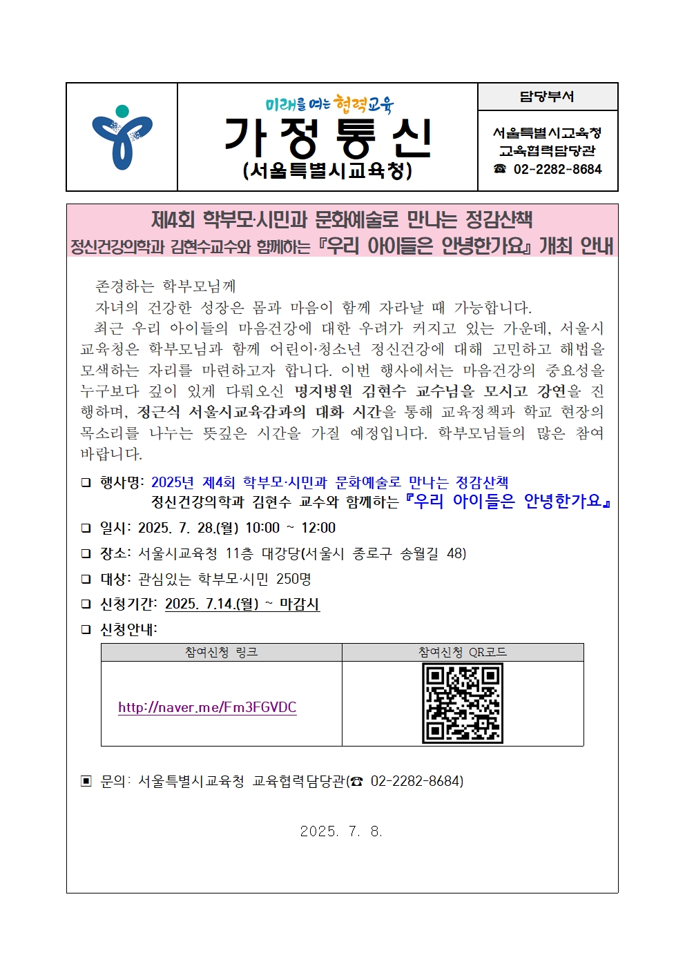 Á¦4ȸ Çкθð‧½Ã¹Î°ú ¹®È­¿¹¼ú·Î ¸¸³ª´Â Á¤°¨»êÃ¥ Á¤½Å°Ç°­ÀÇÇаú ±èÇö¼ö±³¼ö¿Í ÇÔ²²Çϴ¡º¿ì¸® ¾ÆÀ̵éÀº ¾È³çÇѰ¡¿ä¡»°³ÃÖ ¾È³»