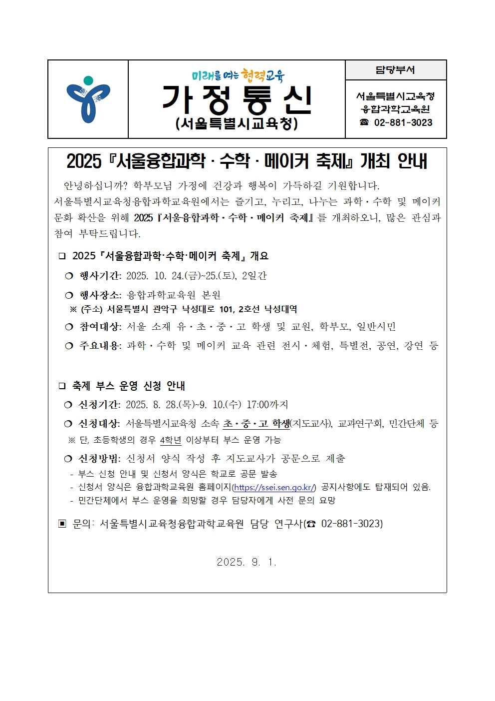 2025¡º¼­¿ïÀ¶ÇÕ°úÇС¤¼öÇС¤¸ÞÀÌÄ¿ ÃàÁ¦¡»°³ÃÖ ¾È³»