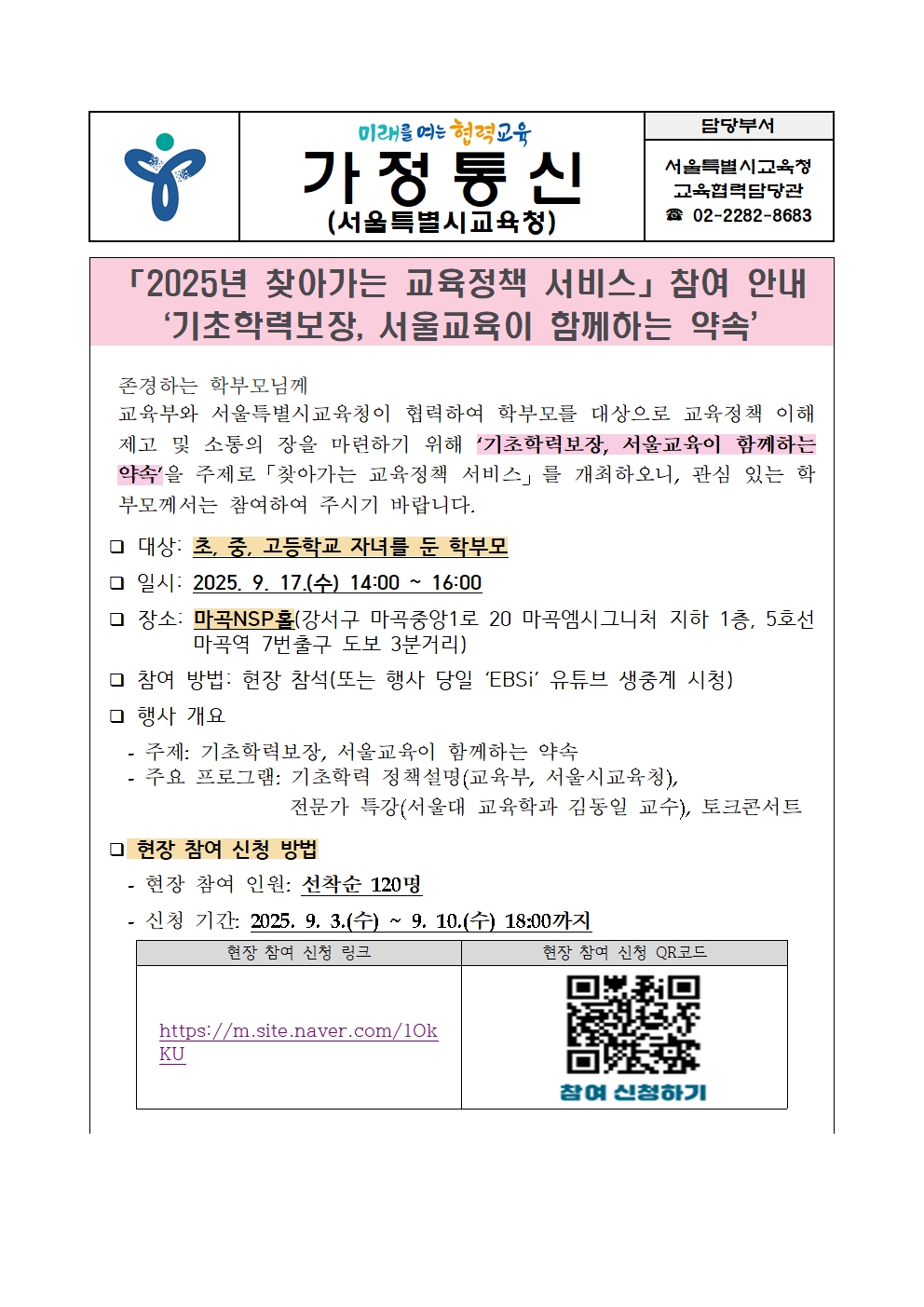 ¡¸2025³â ã¾Æ°¡´Â ±³À°Á¤Ã¥ ¼­ºñ½º¡¹Âü¿© ¾È³» ¡®±âÃÊÇзº¸Àå, ¼­¿ï±³À°ÀÌ ÇÔ²²ÇÏ´Â ¾à¼Ó¡¯