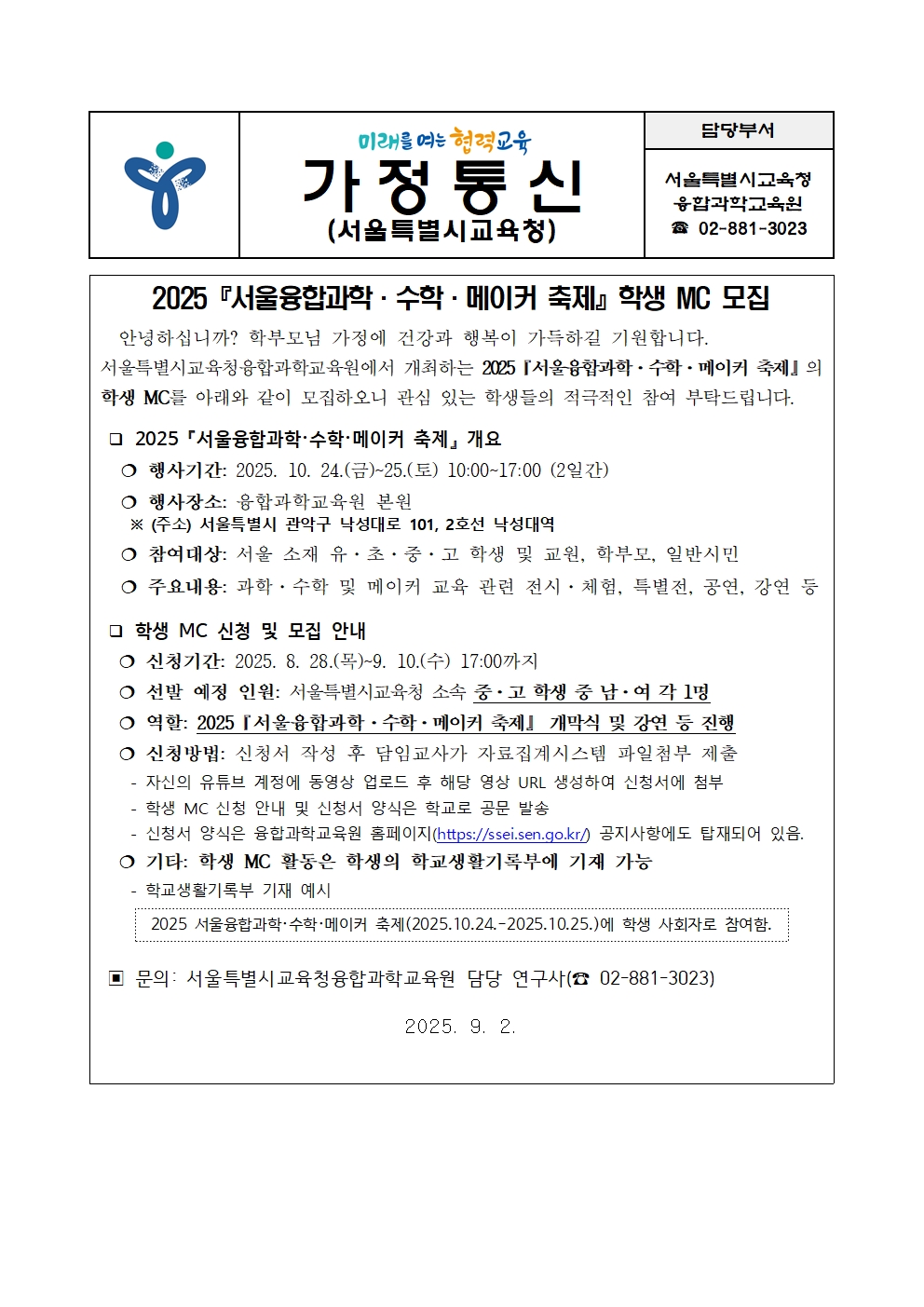 2025¡º¼­¿ïÀ¶ÇÕ°úÇС¤¼öÇС¤¸ÞÀÌÄ¿ ÃàÁ¦¡»Çлý MC ¸ðÁý
