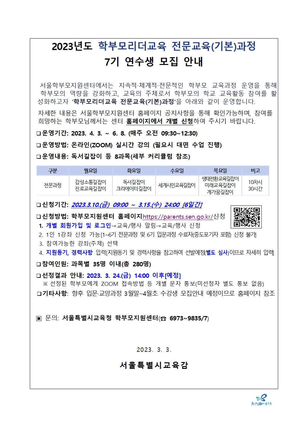 2023³âµµ Çкθ𸮴õ±³À° Àü¹®±³À°(±âº»)°úÁ¤ 7±â ¿¬¼ö»ý ¸ðÁý ¾È³»¹®