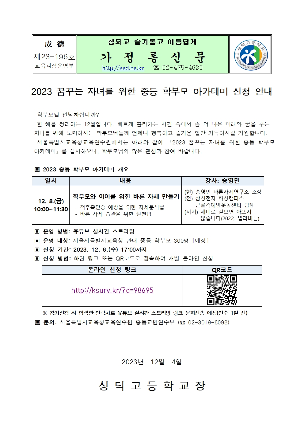 2023 ²Þ²Ù´Â Àڳฦ À§ÇÑ Áßµî ÇÐºÎ¸ð ¾ÆÄ«µ¥¹Ì ½Åû ¾È³»