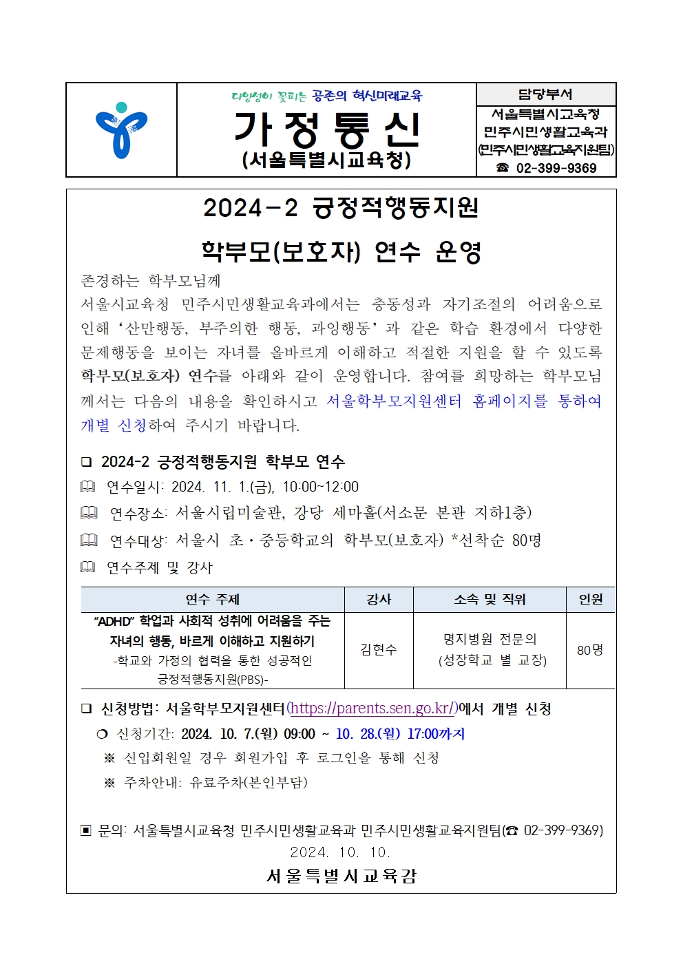 2024-2 ±àÁ¤ÀûÇൿÁö¿ø Çкθð(º¸È£ÀÚ) ¿¬¼ö ¿î¿µ
