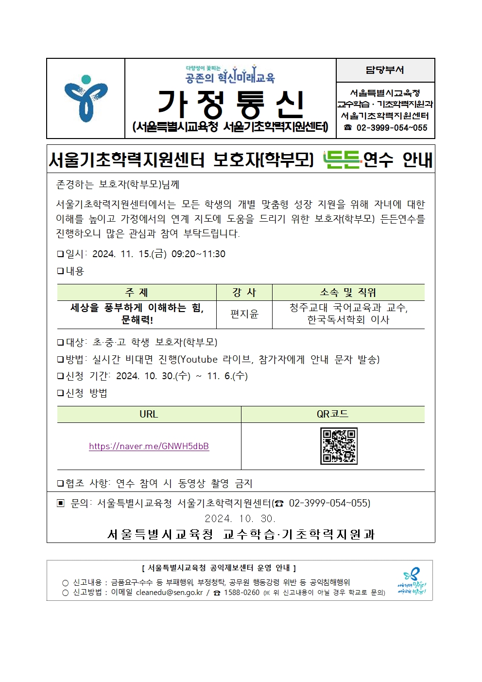 ¼­¿ï±âÃÊÇзÂÁö¿ø¼¾ÅÍ º¸È£ÀÚ(Çкθð) ¿¬¼ö ¾È³»