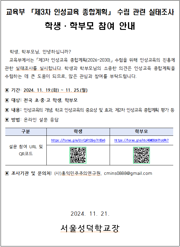 ±³À°ºÎ ¡¸Á¦3Â÷ Àμº±³À° Á¾ÇÕ°èȹ¡¹ ¼ö¸³ °ü·Ã ½ÇÅÂÁ¶»ç Çлý¡¤Çкθð Âü¿© ¾È³»