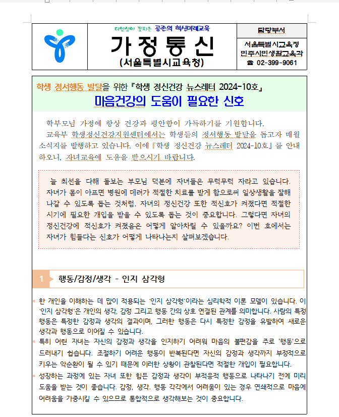 Çлý Á¤¼­Çൿ ¹ß´ÞÀ» À§ÇÑ ¡ºÇлý Á¤½Å°Ç°­ ´º½º·¹ÅÍ 2024-10È£¡» ¸¶À½°Ç°­ÀÇ µµ¿òÀÌ ÇÊ¿äÇÑ ½ÅÈ£